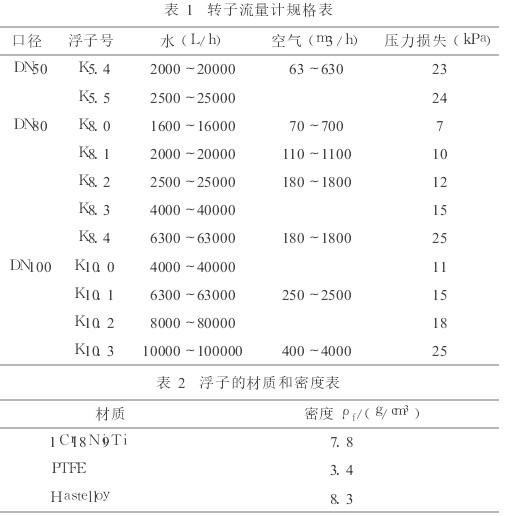 通過查詢(xún)KF10的轉子流量計(jì)規格表,可以得(dé)知選擇口徑DN100,浮(fu)子号K10.2,材質1Cr18Ni9Ti。