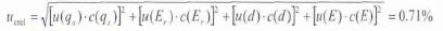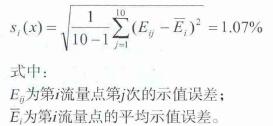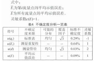 管道式液體(ti)流量計 在線校準(zhǔn)方法的基礎上,選(xuan)擇了一款典型的(de) 管道式電磁流量(liàng)計 作爲本次測量(liang)結果不确定度評(píng)定的研究對象。通(tōng)過對其測量結果(guo)不确定度的評定(dìng)及分析,确保了液(yè)體👅流量計在線校(xiao)準的🤞準确可靠。 引(yǐn)言 随着工業技術(shu)的迅速發展,流量(liang)測量技術日益成(chéng)熟,液體🐅流量計作(zuo)爲液體流量測量(liàng)的重要計量器🧑🏾🤝🧑🏼具(jù),已廣泛用于紡織(zhi)印染、石油化工、冶(yě)金制藥、熱電、造紙(zhi)、環保、水利、市政等(děng)領域。然而,各行各(gè)業在用管道式液(ye)體🈲流量計普遍存(cún)在不便拆卸,導緻(zhì)無法離🙇🏻線送檢的(de)問題,這就急需法(fǎ)定計量技術機構(gou)提供🛀在線校準以(yǐ)解決液體流量計(jì)溯源難題。目前,國(guo)家尚未頒布關于(yú)液體流量計在線(xian)檢💛定/校準的檢定(ding)規👣程或校準規範(fan)。 1校準要求 1.1校準環(huan)境及條件 液體流(liú)量計檢定實驗室(shì),将校準标準器及(ji)被檢流量計按要(yào)求安裝于液體流(liu)量計檢定裝置上(shang)。 1.2校準标準器 0.5級 便(bian)攜式超聲波流量(liang)計 ,傳感器測量範(fàn)圍:(Φ15~Φ800)mm。 1.3被檢流量計 管(guan)道式電磁流量計(jì),其最大流量爲100m3/h,口(kǒu)徑爲Φ80mm。 1.4校準描述 基(ji)于超聲波時差法(fǎ)的原理,采用示值(zhí)誤差的方法進行(háng)比對。 2數學模型 2.1 電(dian)磁流量計 相對示(shì)值誤差按式(1)計算(suan) 式中: E爲電磁流量(liang)計的示值誤差,%; q爲(wei)電磁流量計示值(zhi)(瞬時值),m3/h; qs爲标準器(qi)顯示值(瞬時值),m3/h。 标(biao)準器顯示值(瞬時(shí)值)的計算公式見(jiàn)式(2): 式中: qs爲标準器(qì)顯示值(瞬時值),m3/h; v1爲(wèi)聲道上線平均流(liu)速,m/s; K爲流速分布修(xiū)正系數; d爲管道内(nei)徑,m。 2.2靈敏系數 2.3不确(que)定度的傳播 上式(shì)中各輸入量不相(xiang)關,電磁流量計示(shi)值誤差的标準🌏不(bu)确定度: 3輸入量的(de)相對不确定度評(píng)定 3.1标準器示值的(de)不确定度 根據标(biāo)準器檢定證書可(kě)知其最大允許誤(wu)差爲±0.5%。按☀️均勻分布(bù)考慮,k=,故, 3.2測量管徑(jing)引入的不确定度(du) 管徑測量誤差來(lái)源于卡尺,根據卡(ka)尺檢定證書可知(zhi)其最大允🌈許誤差(cha)爲±0.04mm,實測管徑爲81mm。按(àn)矩形分布考慮,k=,故(gù), 3.3測量重複性的不(bu)确定度 測量重複(fu)性引入的不确定(ding)度可以采用多次(cì)測量獲🍓得,采用A類(lei)評定方法評定。确(què)定3個校準流量點(diǎn),每個流量點校準(zhun)10次,校準結果如表(biao)1。 取校準點80%處求得(dé)10個示值誤差,可得(dé):1077-7應用下式所示的(de)貝塞爾公式,計算(suàn)單次實驗标準偏(piān)差: 分别将其它校(xiao)準點各次流量計(ji)示值誤差值該标(biao)🐇準偏差可💁求得其(qi)它校準點的實驗(yàn)标準偏差。由于✂️在(zài)實際校準時,各校(xiao)準點的校準結果(guǒ)取10次測量的平均(jun)值🚶,故,算術🌂平均值(zhi)🤩的實驗👄标準偏差(chà)爲: 計算求得各校(xiào)準點的單次及算(suàn)術平均值的實驗(yan)标準偏差如表2所(suo)示。 爲了減少風險(xian),取最大實驗标準(zhun)差作爲測量重複(fu)☂️性的标準💛不确定(ding)度,則: 由于溫度、壓(ya)力影響相對較小(xiǎo),忽略其不确定度(du)影響。另🐇外,由🤟于重(zhòng)複性分量包含人(ren)員讀數引入的不(bú)确定度分🈲量,爲💁避(bì)免重複🌂計算,故忽(hū)略人員讀數引入(rù)的不确定度分量(liang)。 4.合成不确定度 4.1不(bú)确定度彙總表 4.2合(hé)成标準不确定度(du)計算 以上各項标(biāo)準不确定度分量(liàng)互不相關,所以合(hé)成标⛹🏻♀️準不确定度(dù)爲: 4.3擴展不确定度(du) 取包含因子K=2,故,測(ce)量結果相對擴展(zhan)不确定度爲:Urel=k?ucrel=1.4%(k=2) 5不确(que)定度的應用 衆所(suǒ)周知,流量計量是(shì)計量科學技術的(de)組成部分之一,它(ta)與國民經濟、國防(fang)建設、科學研究有(yǒu)密切的關系,流量(liàng)計量的準确與否(fǒu)對保證産品質量(liang)、提高生産效率、促(cu)進科學技術的發(fā)🐆展具有重要作用(yong)。爲此,液體管🔱道流(liu)量計在線溯源方(fāng)法的研💰究是确保(bao)在用流量計準确(que)測量的重要保障(zhàng),在線校準結果🔴不(bu)确定度直接♌決定(dìng)流量計計量的正(zhèng)确率,它是評價在(zai)線校🔴準能力的關(guan)鍵指标。本文通過(guò)評定和分析典型(xíng)的管道式電⛹🏻♀️磁流(liú)量計測量結🌂果的(de)不确定☔度,對解決(jué)流量計在線溯源(yuán)難🍉題、提升流量計(jì)在線校準能力具(jù)有積❤️極意義。