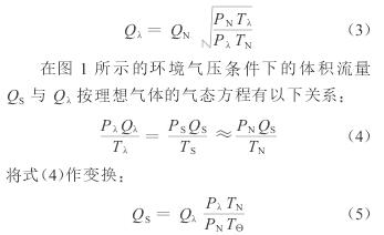 将式(shi)(1)應用于圖(tú)1的情況,可(ke)得到流量(liang)計在有入(ru)口負💛壓(相(xiàng)當于入口(kou)氣壓低于(yú)标準大氣(qì)壓)下的入(rù)口體積流(liu)量Qλ。對Qλ可類(lèi)似寫成: