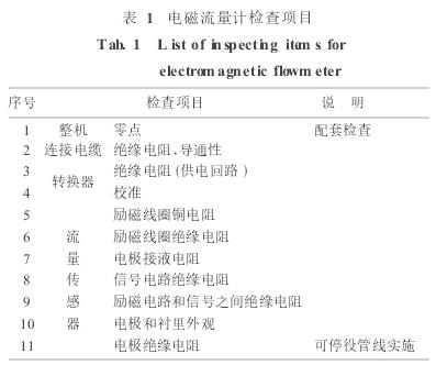 若(ruo)能證明(ming)測量要(yao)素B仍保(bao)持在原(yuán)校準流(liu)量時的(de)允差範(fan)圍内🈚,且(qiě)證明沒(mei)有影響(xiǎng)流量信(xìn)号的其(qí)他不利(lì)因素(如(ru)信号回(huí)路絕緣(yuan)電阻下(xià)降),就可(kě)确認所(suǒ)測流量(liàng)值仍保(bao)持原有(you)性能🌈的(de)值。爲證(zhèng)明B維持(chi)原值,應(ying)檢驗勵(lì)磁線圈(quān)電阻/絕(jué)緣以及(jí)勵磁電(diàn)流,評估(gu)B;檢查電(diàn)極信号(hao)電路絕(jué)緣良好(hao),證明流(liú)量信号(hào)🌈沒有被(bèi)分流;測(cè)量電極(jí)接液電(diàn)阻,評估(gū)電極表(biǎo)面狀況(kuang)是否妨(fáng)礙正常(chang)測量;檢(jian)查測量(liang)各部件(jian)絕緣電(diàn)阻以判(pan)斷零部(bù)件🍓劣化(huà)程度;再(zài)以模🐅拟(ni)信号器(qì)及其他(ta)🐇通用儀(yí)器檢查(cha)轉換器(qì)完好性(xing)。這些檢(jian)查項目(mù)如表1所(suǒ)示,文獻(xiàn)[7]有詳細(xì)的論述(shu)。