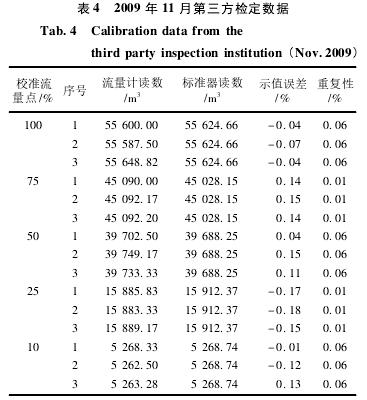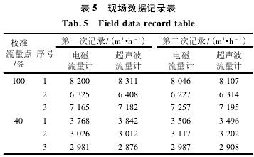 摘 要:爲更(geng)好地将電磁流量(liàng)計在線檢定方法(fa)運用于♌實際現場(chǎng)操作之中,根據《計(ji)量法》和《 管道式電(dian)磁流量計 在線校(xiao)準要求》(以下簡稱(cheng)《要求》),對不同工況(kuang)下的十幾台大♻️口(kǒu)♈徑電磁流量計進(jìn)行現場檢測和校(xiao)驗,所得數據與出(chū)廠标定的原始數(shù)據能夠很好地吻(wěn)合☎️。在對在線檢測(ce)過程中相關細節(jie)進行總結後,證實(shi)📐了電磁流💰量計的(de)在線檢定是🙇🏻切實(shí)可行和有效的🤞,能(neng)夠廣泛地運用于(yu)大口徑流量計的(de)現場檢定。 0 引言 流(liu)量是給排水和水(shui)處理等相關行業(yè)常用的過程控制(zhi)和計量的重要參(cān)數和生産指标,它(ta)直接關系到水處(chu)理的進程與質量(liang)。電磁流量計 由于(yú)其結構簡單,傳感(gǎn)器内沒有可動部(bù)件,沒有節♈流裝置(zhi),不♈存在機械轉動(dong)和磨損,不會産生(sheng)壓力損失,并因其(qi)精度高、線性好、運(yùn)行穩定等優點,在(zài)給排水、污水處理(lǐ)、引水工程等項目(mù)⭐中得到廣泛的應(yīng)用🏃🏻♂️,用以進行内部(bù)計量、過程控制和(he)對外貿易結算。電(dian)磁流量計作爲一(yi)種普遍的計量器(qi)具,按照《計量法✂️》的(de)規定,必須在一定(ding)的周期内對該器(qi)具進行檢定或校(xiao)準。同時,使用✌️方爲(wèi)保證流量計使用(yong)的可靠性,也對 電(dian)磁流量計生産廠(chǎng)家 提出了這個要(yao)求。 然而,應用于水(shui)務行業中的電磁(cí)流量計口徑較大(da)☁️,安裝環境差等因(yīn)素導緻流量計很(hen)難甚至不允許拆(chai)卸之後送到标定(ding)裝置中進行複核(hé)。另外,由于此類流(liu)量計的現場工作(zuò)條件與🏃♀️實驗室校(xiao)驗設置條件存在(zai)偏異,因此,電磁流(liú)量計,尤其是 大口(kou)徑電磁流量 在使(shǐ)用一個階段之後(hòu),測量也許會存在(zài)一定的不确定性(xìng)偏差。在線大口徑(jìng)流量計不停水的(de)校準和檢定問題(tí)亟待解決。 1 電磁流(liú)量計的在線檢定(dìng)方法 目前,普遍應(ying)用的電磁流量計(jì)在線檢定手段主(zhu)要有标準✔️表法和(hé)電參數法。電參數(shu)法是根據管道式(shì)電磁流量計的測(ce)量♊原理,對影響在(zai)線工作的管道式(shì)電磁⛱️流量計的相(xiàng)關♍參數進行檢定(dìng)( 如勵磁線圈對地(dì)絕緣電阻、電極對(dui)地( 接液) 電阻、勵磁(ci)❄️線圈電阻🚩和流量(liang)計電纜線電阻) ,測(ce)❌量控制相關參數(shù)在一定♍允許的變(biàn)化範圍内與出廠(chang)檢定的原始數據(ju)進行比較溯源,使(shǐ)其保持在出廠時(shi)的标準準确度以(yi)内,以💯滿足使用要(yào)求。标✂️準表法是以(yǐ)标準表爲标準器(qi)具,使流體在相同(tong)時間間隔内,同時(shi)連續通過标準表(biao)和被校表,比較兩(liǎng)者的輸出流量值(zhí)的偏差,從而确定(ding)被校流量計與标(biāo)準表所示的流量(liàng)值的關系✉️。 對于以(yi)上兩種方法孰優(yōu)孰劣,不能斷然判(pan)明,但根🈲據以上兩(liǎng)種方法的在線檢(jian)定過程均能反映(yìng)測量性能。 2 電參數(shu)法 衆所周知,電磁(ci)流量計是根據法(fa)拉第電磁感應定(ding)律來測量導電液(yè)體體積流量的儀(yi)表。法拉第電磁感(gǎn)應公式如式(1) 所示(shi): E=K×B×V×D (1) 式中: B 爲流量計勵(lì)磁線圈感應磁場(chǎng)的強度;V爲被測電(dian)液導體🌏的⁉️流速;D爲(wei)管徑;K爲儀表系數(shu)。宏觀上把導電液(yè)體看成導體。 由式(shi)(1) 可知管徑D與系數(shu)K都爲固定參數。在(zai)一定流速下,隻要(yào)保證參數 B 的穩定(ding),那麽感應電動 E也(ye)随之穩定,即在進(jin)行電參數法在線(xiàn)檢定時,若參數B保(bǎo)持在出廠校準時(shi)的允許範圍内時(shi),就可證⁉️明該流量(liàng)計目前所測流量(liàng)的精度仍與出✉️廠(chang)時保持一緻[3]。 影響(xiǎng)電磁感應強度 B 的(de)因素,就流量計本(ben)身而言,應檢驗⛷️勵(li)🌂磁♈線圈電阻(扣除(chu)溫度變化引起的(de)差值)、勵🌈磁線圈的(de)絕緣🎯以及勵磁電(diàn)流的幅值。另外,我(wo)們需檢查電極信(xìn)号電路絕緣性能(néng)是否良好,證明原(yuan)本微弱的流量信(xin)号有沒有額外大(da)的損失; 測量電極(jí)✍️的接液電阻,評估(gū)電極表✂️面是否被(bèi)過度氧化、腐蝕、結(jie)垢或損傷🈲而☁️影響(xiǎng)正常測量; 檢查接(jie)地電阻等情況并(bing)排除雜亂信号的(de)幹擾。同時,使用精(jing)度佳的模拟信号(hào)器檢測轉換器的(de)工作狀況。 2.1 電參數(shu)法的檢定過程 在(zài)檢定過程中,首先(xian),觀察轉換器内的(de)各項參數設⚽置是(shi)🈚否有被改動過,要(yào)求轉換器的各項(xiàng)參數設置與電磁(cí)流量計出廠銘牌(pai)🌈上的一緻; 然後觀(guan)察兩根電纜( 勵磁(cí)電纜、信号電纜) 是(shì)否有損傷,是否保(bao)持原樣。《管道式電(dian)磁流量㊙️計在線校(xiào)準要求》指出需保(bao)證被測液體電❓導(dao)率符合流速在 0.3 ~10 m/s 的(de)流動狀态下,被測(cè)😍管道中應保持滿(mǎn)管,無氣泡聚集。 在(zài)對該自來水廠進(jìn)行檢定觀察時,全(quan)部的流量計都在(zai)穩定有序地運行(háng),無數據波動等狀(zhuang)況出現。因此,可以(yi)判定以上條件均(jun)符合,并在此基礎(chu)上對流量計的☔一(yī)系列參數作了檢(jiǎn)測🌈。 由于在第二次(cì)來到自
