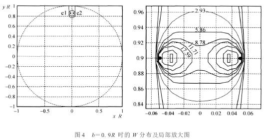 取b= 0.9R,θ= 0.0555rad,繪(hui)制W分布如圖(tu)4所示。