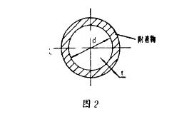 有些礦(kuàng)漿往往容易在測(ce)量管道内壁上造(zào)成結疤現象,如氧(yǎng)化鋁生産過程中(zhōng)的漿液不僅含有(you)堿性物質和固體(ti)顆粒,而且礦漿在(zai)90℃以上的高溫條件(jiàn)輸送,這時就容易(yi)在管壁上附着料(liào)漿造成嚴重的結(jié)疤現象。這時,用戶(hu)可選用有光滑的(de)聚四氟乙烯襯裏(lǐ)的電磁流量計,才(cái)能避免這種結疤(bā)現象。當管内壁上(shàng)附着物如圖2所示(shi)時,将造成測量誤(wu)差。