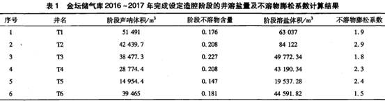 根據實(shí)驗,金壇(tán)儲氣庫(ku)不溶物(wu)膨松系(xì)數在1.5~3範(fan)圍。由于(yú)鹽穴造(zao)腔高度(du)近150m,含多(duo)個夾層(céng),夾層含(han)粘土礦(kuang)物含量(liang)不同㊙️,所(suǒ)以膨松(sōng)系數不(bu)同,同時(shí)夾層的(de)厚度不(bú)同,所以(yǐ)利用該(gai)㊙️方法模(mo)拟的腔(qiāng)體體積(ji)的評價(jia)應根據(jù)不同造(zao)腔階段(duan)來進行(hang)。.表1列舉(jǔ)了2017年測(cè)腔井的(de)階段造(zào)腔體積(ji)及該階(jiē)段不溶(róng)物含量(liang),并計算(suàn)該階段(duan)⚽的不溶(rong)物膨松(sōng)系數。