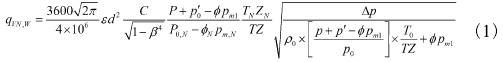 式(shì)(1)中,基于結(jie)算狀态下(xià)的濕煤氣(qi)體積流量(liàng)用qVN,W表示,單(dan)位📱爲m3/h;計算(suan)中所涉及(jí)的煤氣可(kě)膨脹因數(shù)用表示⛱️;經(jīng)過孔闆的(de)流❌出因數(shù)用e表示;孔(kong)闆内徑d與(yu)管道内徑(jing)D之間的比(bǐ)值用β表示(shi);處于正常(cháng)運行狀态(tai)下的濕煤(méi)氣表壓力(li)用p表示,單(dān)位爲kPa;當地(di)大氣平均(jun1)壓力用ρ′0表(biǎo)示,單位爲(wèi)kPa;濕煤氣結(jie)算壓力用(yong)P0,N表示,單位(wèi)爲kPa;處于結(jie)算狀态下(xià)🚶♀️飽和水蒸(zhēng)汽絕對壓(yā)力用pm,N表示(shi),單位爲kPa;濕(shī)煤氣的相(xiàng)對濕🌈度用(yòng)P0,N表示,可用(yòng)%衡㊙️量;結算(suàn)溫度及濕(shī)💯煤氣溫度(du)用TN、T表示👈,單(dān)位爲K;氣體(tǐ)壓縮因子(zǐ)分别用ZN、Z表(biao)示;孔闆壓(ya)差用表示(shi),單位爲kPa;标(biao)準氣壓下(xia)幹煤氣的(de)密度用ρm1表(biao)示,單位爲(wèi)kg/m3;處于正常(cháng)運行工✔️況(kuang)下的飽和(he)水蒸氣密(mi)度用表示(shi),單位爲kg/m3,T0與(yǔ)P0都爲常數(shu),大小分🐪别(bie)爲273.15K、101325kPa。