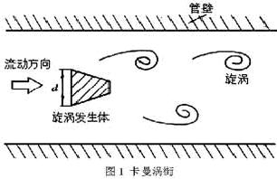 在流體中(zhōng)設置旋渦(wō)發生體(阻(zǔ)流體),從旋(xuán)渦發生體(tǐ)兩側交替(ti)地産生有(yǒu)規則的旋(xuán)渦,這種旋(xuan)渦稱爲卡(kǎ)曼渦街(見(jian)圖1),旋渦列(lie)👅在旋渦發(fa)生體下遊(yóu)非對稱地(di)排列。根♋據(jù)卡曼渦街(jiē)原理,有如(rú)下關系式(shì):