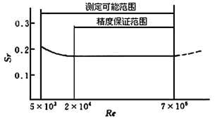 K除(chú)與旋渦發(fa)生體、管道(dào)的幾何尺(chi)寸有關外(wai),還與斯特(te)勞哈爾數(shù)有關。斯特(tè)勞哈爾數(shù)爲無量綱(gāng)參數,它與(yǔ)旋渦發♉生(sheng)體形狀🛀及(ji)雷🈚諾數有(you)關,圖2爲圓(yuán)柱狀旋渦(wo)發生體的(de)斯特勞哈(hā)爾數與🎯管(guan)道雷諾數(shu)的關系圖(tu)。由圖2可見(jian),在ReD=2×104~7×106的範❗圍(wei)内,Sr可視爲(wei)常數,這是(shi)儀表正常(chang)工作範圍(wei)。當測量氣(qì)體💞流量時(shi),渦街流量(liang)計的流量(liàng)計算式爲(wei):
