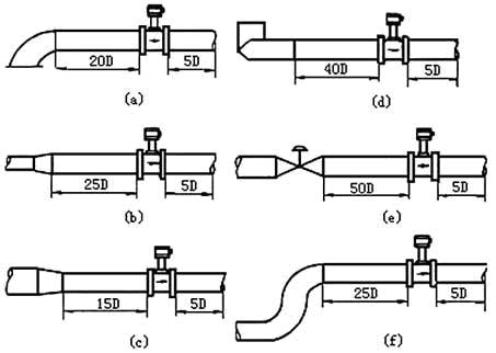 圖5 渦街流(liú)量計對上(shàng)、下遊直管(guan)段長度的(de)要求