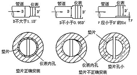 ② 配(pèi)管應與傳(chuan)感器同心(xin),同軸度應(ying)小于0.05D’;