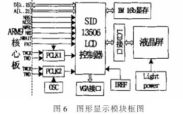 由于AT91RM9200處理器未(wèi)集成圖形顯示,核(hé)心闆上也未提供(gòng),所以,要實現圖形(xing)顯示,必須構建圖(tú)形顯示模塊。電路(lu)采🙇♀️用LCD控制器SID13506顯示(shi)🐅芯片[7]實現彩色液(ye)晶點陣顯示和VGA标(biao)準接口。系統框圖(tu)如圖6所示。