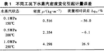 假如設計孔闆(pǎn)流量計時是按(àn)照0.5MaP所對應的飽(bao)和水蒸汽密度(du)ρ設=2.667kg/m3設計的,則在(zài)不同工況下所(suǒ)産生的誤差如(rú)表1。