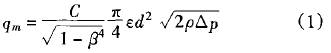 式中:qm爲質量流(liú)量,kgs/;C爲流量因素(sù);β爲孔闆孔徑與(yu)管道内徑之比(bi),β爲孔闆孔徑與(yǔ)管道内徑之比(bi),β=d/D;?氣體膨脹💛因素(sù),當流體爲⛷️不可(ke)🈲壓縮性流體時(shi)?=1;d爲孔闆孔徑,m;△p爲(wei)孔闆前🔆後的壓(ya)差, Pa;ρ爲節流件入(rù)口端流👉體密度(du),kg/m3。