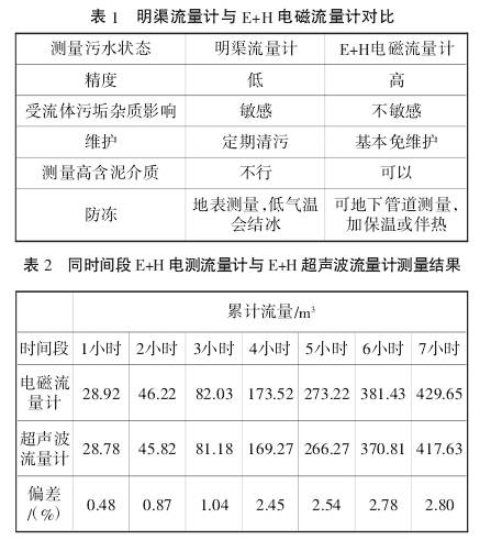 摘要:由(yóu)于污水來源不同(tóng),所含污染物質也(yě)多種多樣👣,總體來(lái)說都比較髒、含有(yǒu)大量雜物、甚至還(hai)有腐蝕性。一般污(wū)水測量🛀中選擇明(míng)渠堰槽流量計、超(chao)聲波流量計 和電(dian)磁流量計 的比較(jiào)普遍。文中将電磁(cí)流量計(以下簡稱(chēng)電磁流量計)與常(cháng)用的超聲波流量(liàng)計和明渠流量計(jì)在污😄水測量中的(de)性能進行了對比(bǐ),從分析,結果表明(ming),電磁流量計更适(shi)合污水流量的🧡測(ce)量,能對污水測流(liu)起到實時🔞準确的(de)監控。 0引言 流量計(ji)是污水處理廠中(zhong)應用最多、最廣的(de)測量儀㊙️表📧。流⭐量計(ji)的❄️類型多種多樣(yang),爲了有效控制污(wū)水排放,确保監測(cè)污水排放的🍓準确(què)性,挑選合适的流(liu)量計十分必要。目(mù)前測量污水流量(liang)常用的流量計有(you)明渠堰槽流量計(ji)、超聲波流量計和(hé)電磁流量計等。其(qí)中Endress+Hauser(恩德斯豪斯,簡(jiǎn)稱E+H公司)公司生産(chǎn)的電磁流量計獨(dú)有過電壓勵磁技(jì)術,可快🙇♀️速形成磁(ci)場,縮短穩定磁場(chǎng)形成時間,延長穩(wěn)‼️定測量周💘期,有效(xiào)過濾雜散信号,提(tí)高信号獲取強度(du),測量更穩定,能克(kè)服傳統明渠流🌈量(liàng)計、超聲波流量計(jì)的常見缺點,提高(gāo)測量污水的準确(què)度和精度。爲了對(dui)比這幾種常見流(liú)量計的測流特性(xìng),本文從✊原理、特點(diǎn)、影響測流準确💞性(xìng)的因素,污水測流(liu)特點等方面對上(shang)述幾種流量計進(jin)行了對比分析,以(yǐ)期選出最适合污(wū)水流量監測的流(liu)量計,使監測值合(he)理可靠,爲實際工(gong)作中污😘水測流儀(yí)表的選擇提供參(cān)考🌈。 1幾種測量方法(fa)的原理和特點 1.1.明(ming)渠流量計 明渠流(liu)量計的原理是在(zai)渠道中安置标準(zhǔn)量水堰槽(如巴歇(xiē)爾量水槽),通過測(cè)量被測流體液位(wèi)高度,再經過測量(liàng)儀器内部的處理(li)器運算得到流量(liang)(根據相應流量公(gong)式或經驗關系式(shi),将測出的水位值(zhi)換算成流量值)。據(ju)統計,現用大多數(shù)的明渠測量方法(fa)爲巴歇爾槽明渠(qu)流量🏃計,因此本文(wen)以标準巴歇💜爾槽(cao)明渠流量計爲例(lì)進行分析。 标準巴(ba)歇爾槽流量Q計算(suàn)公式如下: Q=0.375×b×(Ha/0.305)nn=1.569b0.026 式中:b爲(wèi)喉道寬度;Ha爲實測(ce)液位;n是指數,不同(tóng)渠道指數不❄️同。 由(you)計算公式可知,流(liú)量測量的準确度(du)是由喉道寬度🤞b和(he)實測液位Ha兩個因(yin)素決定的。實際測(ce)量液位時受到的(de)影響因素最多,如(rú)測量液位儀器的(de)準确度和被測液(ye)面的流動狀态等(děng)。綜🏃♂️合而言有以下(xia)幾個方面影響測(cè)量準确度: 1)測量液(ye)位的準确度,主要(yao)取決于液位計的(de)測量準确度。大多(duo)數明渠都在使用(yòng)非接觸式超聲波(bo)液位計,實際測🎯量(liang)時受到被測液體(tǐ)表面浮沫和固體(tǐ)漂浮物的影響較(jiào)大。 2)明渠流量計液(yè)位測量的重複性(xing)主要取決于液面(mian)的穩✨定程度。在實(shí)際測量污水的時(shi)候,經常發生水流(liu)不穩定的情✏️況,如(rú)産生🌈小型漩渦、波(bo)浪、泡沫等,液位測(ce)量✉️的重複性常常(chang)🈲得不到滿足。 3)堰槽(cáo)的幾何尺寸,取決(jue)于測量儀器的準(zhun)确度(堰槽尺寸的(de)制🈚造精度和安裝(zhuāng)技術要求嚴格,稍(shāo)有偏差将會對測(ce)量結果造成較☁️大(dà)誤差)。 綜上所述,明(míng)渠流量計在監測(cè)污水流量的準确(què)度,受😍到多方面因(yīn)素的影響,如堰槽(cao)的選型、設計、制作(zuo)、安裝、調試和設置(zhi),一🧡旦安裝成型後(hou)出現誤差很難糾(jiu)正,在實際測量污(wū)水時受到外界環(huán)境幹擾因素影響(xiang)較大(如被測液面(mian)擾動和結冰等),而(ér)且使用中🍓需要經(jīng)常維護。 1.2.超聲波流(liu)量計 超聲波流量(liàng)計 是20世紀70年代開(kai)始應用的一種流(liu)量儀器,和電磁流(liú)量計一樣,因爲儀(yi)器流通通道未設(shè)置任何阻礙件,都(dou)屬于無🐇阻礙流量(liàng)計,适合測量大管(guan)徑和不易接觸的(de)流體。超聲波流量(liàng)計測量是一種間(jian)接測量方法,主要(yao)有多普勒法和時(shi)差法兩種方式。在(zài)污水測🏃♀️量中應用(yong)最廣泛的是多普(pǔ)勒超聲波流量計(ji)。 1.2.1時差法原理 在流(liú)體中超聲波信号(hào)順流時傳播速度(dù)快,逆流時信号傳(chuán)播速度慢,通過測(ce)量超聲波信号在(zai)流體中順流和逆(nì)流傳播時間差,即(ji)時差,間接測出流(liú)體流速,再通過流(liu)速可以計算出流(liú)體流量。時差法适(shi)合用于測量純淨(jing)流體,有較多氣👣泡(pào)或雜質的流體會(hui)阻礙超聲波正常(chang)傳播,會影響測量(liang)結果不準确。 1.2.2多普(pu)勒法原理 超聲接(jiē)收器接收到超聲(shēng)波傳播途中遇到(dao)的懸浮物🔴質或微(wei)小氣泡而被散射(she)的信号。發射信号(hào)頻率📞受多普勒效(xiao)應(利用✔️聲波所産(chan)生的多普勒頻移(yi)現象,通過在靜止(zhǐ)點檢測從移動源(yuán)所發射聲波産生(shēng)的多普勒頻移來(lái)計算散射體流動(dòng)速度🈲進行測量⚽)的(de)影響變爲不同的(de)信号頻率,根據頻(pín)率之差與流體流(liú)速的數量關系,可(kě)算出流體流量。多(duō)普勒法