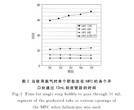 當使用(yòng)氦氣時,單(dān)個肥皂泡(pào)在MFC的各個(ge)開口處通(tong)過10ml刻度💔管(guǎn)段🏃♀️所❤️用時(shi)間如圖2所(suo)示。當MFC完全(quán)打開(對應(ying)于💃🏻測得的(de)氣體流速(sù)爲60.0ml/min)或調整(zheng)爲4圈(37.5ml/min)時,肥(fei)皂膜通過(guo)每🈲個段的(de)時間都是(shi)恒定的,即(ji)計算出的(de)氣體流速(sù)是🧑🏽🤝🧑🏻一緻的(de)。此外,對MFC執(zhí)行4圈關閉(bi),此時氣體(tǐ)流速爲27.3ml/min。觀(guan)察👅到肥皂(zao)泡通🏃過越(yuè)靠近管段(duàn)出口處的(de)段需要的(de)時👄間越長(zhǎng),即肥皂泡(pào)的速度在(zài)減慢。當MFC設(she)定爲12轉時(shi),氣體流速(su)爲9.1ml/min,這種現(xian)✏️象更爲顯(xiǎn)著。