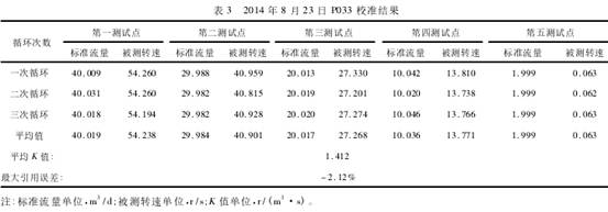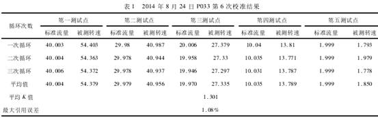 注:标準(zhǔn)流量單(dān)位,m3/d;被測(cè)轉速單(dan)位,r/s;K值單(dān)位,r/(m2?s)。