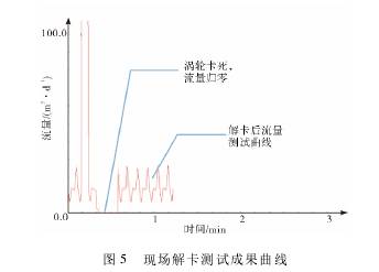 防砂卡(kǎ)渦輪流(liú)量計在(zai)五大隊(duì)成功解(jiě)卡370井次(ci),現場解(jie)卡測試(shì)曲線見(jian)圖5。剛測(ce)試時,渦(wo)輪葉片(piàn)轉動正(zhèng)常,大約(yue)在20s左右(yòu),由于流(liú)體帶💁進(jìn)的雜質(zhi)導緻流(liu)量曲線(xiàn)歸零。通(tong)過儀器(qì)二芯供(gong)電收傘(sǎn),大約15s後(hòu)再開傘(san),一芯流(liu)量供電(diàn)測試,渦(wo)輪⚽葉片(pian)通過瞬(shùn)間開收(shōu)🈲傘,擴大(dà)了葉輪(lun)與渦輪(lún)⭐殼體之(zhī)間的空(kōng)間,雜質(zhì)通過渦(wo)輪葉片(piàn)旋轉正(zhèng)常。從曲(qǔ)線可以(yǐ)看出,在(zai)解卡前(qian)和解卡(kǎ)後,渦輪(lun)旋轉--緻(zhì),都爲15m3/d左(zuo)右,而且(qie)解卡前(qian)後沖次(cì)一緻,渦(wo)輪✊流量(liàng)計解卡(ka)裝置有(yǒu)效解決(jué)了因油(yóu)井㊙️出砂(shā)、垢片、間(jian)隙小造(zao)成的砂(sha)卡,砂卡(kǎ)🤟率由原(yuan)先的70%降(jiàng)低到30%,實(shi)現了👄産(chan)液剖面(miàn)流量準(zhun)确測試(shi)👣。