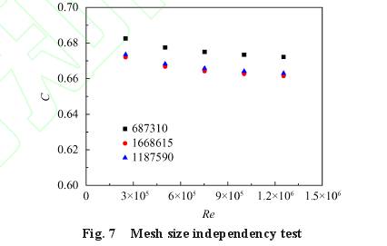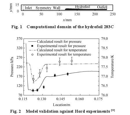 摘要(yào):平衡型低溫(wen)流量計 可用(yòng)于低溫推進(jìn)劑的加注、分(fen)配、輸送等環(huán)節,其孔闆結(jie)構特征是影(ying)響流量計性(xìng)能的關鍵因(yīn)素。爲了研究(jiu)孔闆倒角對(dui)平衡型低溫(wēn)流量計流出(chū)系數、壓力損(sun)失系數和穩(wen)定性的影響(xiǎng),建立了基于(yú)Mixture多相流模型(xíng)、Schnerr-Sauer空化模型和(he)Realizablek-ε湍流模型的(de)CFD數值模型,并(bing)結合文獻中(zhong)的水翼空化(huà)實驗和多孔(kong)闆流動實驗(yàn)的結果驗證(zheng)了模型的可(ke)靠性。模拟計(ji)算結果顯示(shi),開設前倒角(jiǎo)會增大多孔(kǒng)闆的流出系(xì)數,減小壓力(li)損失系數,但(dan)會增大流量(liang)計測量時的(de)不穩定性;45°的(de)前倒角使流(liú)出系數由0.674增(zeng)大到0.907,适當開(kāi)設前倒角可(ke)以有效提高(gao)流量計的工(gōng)作性能。而開(kai)設後倒角對(duì)流量計性能(neng)的影響較小(xiǎo)。用于流體流(liú)量的雙向測(ce)量時,可對多(duo)孔闆的前後(hou)端均開設45°的(de)倒角。 1引言 孔(kong)闆流量計 因(yin)其結構簡單(dan)、可靠性高和(he)流體适用性(xìng)廣等優點,目(mu)前已廣泛地(di)應用于石油(yóu)和化工等領(lǐng)域。然而,當流(liú)體流經孔闆(pǎn)時會發生節(jiē)流壓降,容易(yì)發生空化現(xian)象,此外也會(hui)造成較大的(de)局部壓力損(sun)失,這會對流(liu)量計的性能(néng)和設備安全(quán)帶來影響。另(ling)一方面,空間(jian)技術的快速(sù)發展對低溫(wen)流體流量測(ce)量精度的要(yao)求也越來越(yuè)高[1]。低溫推進(jin)劑的加注、分(fen)配、輸送等環(huan)節都離不開(kāi)流量的精度(dù)高測量。多孔(kǒng)闆可以平衡(héng)調整流場[2],流(liú)體流經多孔(kong)闆後受到的(de)擾動和壓力(li)損失比标準(zhun)孔闆小,因而(er)在低溫流體(tǐ)測量領域的(de)應用潛力大(da)。 在過去的幾(ji)十年間,多孔(kong)闆的研究受(shòu)到大量關注(zhu),主要集中于(yú)結構參數和(hé)運行工況對(dui)其流出系數(shù)和壓力損失(shi)系數的影。 可(ke)以發現,以前(qián)對多孔闆流(liú)量計的研究(jiu)多集中于常(chang)溫流體,如空(kōng)氣和水等,對(duì)應用于航天(tiān)推進技術領(lǐng)域的低溫流(liú)體等研究相(xiàng)對較少。此外(wài),低溫流體流(liu)經多孔闆後(hòu)易發生空化(huà)現象,在研究(jiu)多孔闆流量(liang)計适用于低(dī)溫流體的性(xing)能研究時,需(xu)要建立并驗(yan)證考慮低溫(wēn)流體空化流(liu)動的數值模(mó)型。同時,對孔(kǒng)闆結構參數(shu)的研究多集(ji)中于孔闆直(zhi)徑比、孔闆厚(hòu)度、開孔直徑(jing)、孔分布方式(shì)等,很少涉及(jí)到孔闆倒角(jiao)。 拟以低溫流(liú)體液氮爲介(jiè)質,采用數值(zhí)方法研究孔(kǒng)闆倒角對平(ping)衡型流量計(ji)低溫流體流(liu)量測量性能(neng)的影響,計算(suàn)模型将考慮(lǜ)低溫流體的(de)空化效應。 2方(fang)法 2.1數學模型(xing)及驗證 液氮(dan)流經多孔闆(pan)後,因節流壓(yā)降,在一定工(gong)況下流場壓(yā)力會小于相(xiang)應溫度下流(liú)體的飽和壓(yā)力,誘發空化(hua),此時流體流(liu)動 爲氣液兩(liǎng)相流。将氣液(ye)兩相看成混(hùn)合物單相,采(cai)用混合物多(duo)相流模型求(qiu)解連續性方(fāng)程、動量方程(cheng)和能量方程(cheng)。基本控制 方(fāng)程如下 式中(zhōng)下标m,l和g分别(bié)表示混合相(xiàng)、液相和氣相(xiang);a爲體積分數(shù);p,v,μ,t,p,T和h分别爲密(mì)度、速度、動力(lì)粘度、時間、壓(ya)力、溫度和焓(han);keff爲有效導熱(rè)系數;SE爲體積(ji)熱源;?dr.;爲相i的(de)漂移速度。 Schnerr-Sauer空(kōng)化模型已被(bei)用于低溫流(liú)體空化的數(shù)值計算[19-20]。其具(jù)體表達式爲(wei)[21]分别表示氣(qi)泡生成、氣泡(pào)破裂和飽和(hé)蒸汽。 此外,采(cai)用Realizablek-ε湍流模型(xíng)進行湍流閉(bì)合,它滿足雷(léi)諾應力的數(shù)學約束,與實(shí)際湍流過程(cheng)一緻。與标準(zhǔn)k-ε模型相比,改(gǎi)進了湍流粘(zhan)性的計算,并(bìng)基于均方渦(wō)波動的輸送(sòng)方程建立了(le)新的ε方程。對(dui)涉及旋轉、強(qiáng)逆壓梯度下(xia)的邊界層,分(fen)離和回流等(děng)流動,Realizablek-ε模型可(ke)得到較好的(de)預測結果。湍(tuan)動能k和湍流(liu)擴散率ε的輸(shū)送方程爲 是(shì)因平均速度(du)梯度生成的(de)湍動能。 采用(yòng)Hord等[23]的液氮水(shuǐ)翼空化實驗(yan)283C來驗證上述(shù)數學模型在(zài)模拟低溫流(liu)體空化流動(dòng)時的可靠性(xìng)。水翼結構和(hé)計算域如圖(tu)1所示,且實驗(yan)中液氮的進(jìn)口溫度爲77.71K,自(zi)由來流速度(du)爲14.5m/s,空化數爲(wèi)1.8。模拟中采用(yòng)速度進口和(he)壓力出口,y=0處(chù)設爲對稱邊(biān)界條件,壁面(mian)設爲無滑移(yi)壁面。計算結(jie)果和實驗結(jie)果的對比如(rú)圖2所示。水翼(yi)壁面壓力和(hé)溫度的數值(zhí)及随 位置的(de)變化規律基(ji)本吻合,考慮(lü)到實驗誤差(chà)及模拟對實(shí)際問題的簡(jian)化,可以認爲(wèi)數值計算模(mo)型可以有效(xiào)地用于模拟(nǐ)低溫流體 的(de)空化流動。 此(ci)外,選取Huang等[26]的(de)多孔闆流動(dòng)實驗結果,來(lai)驗證數值模(mo)型用于流體(tǐ)多孔闆流動(dong)的準确性。孔(kong)闆結構如圖(tu)3 所示,采用了(le)實驗中編号(hao)爲No.1的多孔闆(pan),管路内徑D、開(kāi)孔直徑d0、内圈(quān)開