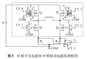 勵磁線(xian)圈驅動(dòng)電路主(zhǔ)要由H橋(qiao)開關電(diàn)路和H橋(qiáo)驅動🈚電(dian)路🐪組成(cheng),如圖5所(suo)示。H橋開(kai)關電路(lù)由4個NMOS管(guan)組成,受(shou)H橋驅動(dòng)電路控(kòng)制,其中(zhong),Q3和Q4爲控(kong)制勵磁(ci)電流穩(wěn)定的開(kai)關管,實(shí)現脈沖(chòng)勵磁,Q1和(hé)Q2用來改(gai)變勵磁(cí)電流方(fang)向的開(kai)關管;H橋(qiao)驅動電(dian)路主要(yao)由電平(ping)轉換電(diàn)路和光(guang)耦組成(cheng),其中,P1和(he)P2是光耦(ǒu),T1和T2是電(diàn)平轉換(huan)電路。CT_1,CT_2,CT_3和(he)CT_4分别是(shi)Q1,Q2,Q3和Q4的控(kong)制信号(hào);VFB是由單(dan)刀雙擲(zhì)開關S1輸(shu)出的檢(jiǎn)流電🚩阻(zǔ)上的電(diàn)壓信号(hào)。在H橋開(kāi)關電路(lù)的低端(duan)和地之(zhi)間🏃接🔞入(ru)兩個檢(jian)流電阻(zǔ),這2個檢(jiǎn)流電阻(zǔ)通過👅開(kāi)關進行(háng)選擇,以(yi)保💞證在(zai)勵磁電(dian)流方向(xiang)切換時(shí),單刀雙(shuāng)擲開關(guan)輸出的(de)勵磁電(diàn)流值總(zong)☎️爲正,實(shí)現對勵(li)🐪磁電流(liú)的準确(que)控制。