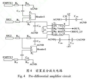 前置(zhì)差分放大(dà)電路主要(yao)實現信号(hao)的放大和(hé)共模噪聲(shēng)的抑制。電(diàn)路采用具(jù)有高共模(mo)抑制比、高(gāo)增益🏃🏻精度(dù)、低失💜調漂(piāo)移、低增益(yì)漂移的精(jīng)密儀用放(fàng)大器。前置(zhi)差分放大(da)電路如✔️圖(tú)4所示🧡。.