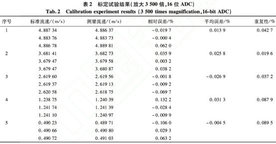 在(zài)流速爲0.5~5m/s的(de)範圍内,共(gòng)選取了5個(gè)标定點,并(bìng)通過示值(zhi)🌂誤差🐪拟合(he)方法計算(suàn)出儀表系(xì)數。然後,驗(yan)證電磁流(liu)量計的精(jīng)度🌏。放大👅3500倍(bei)、16位ADC水流量(liang)标定試驗(yàn)結果如表(biao)2所示。