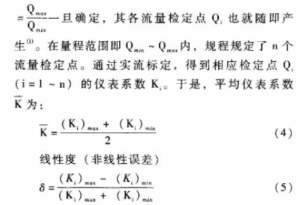 按照公(gong)式(5)計算(suàn)得到非(fēi)線性誤(wu)差δ≤1.0%,對于(yu)量程比(bi)a=10的渦輪(lun)流量傳(chuan)感器,很(hěn)難實現(xiàn)。即采用(yong)平均儀(yi)表系數(shù)`K計算流(liu)量的計(jì)量精度(du)達到1.0級(jí)水平是(shì)一件很(hěn)難是達(da)到的指(zhǐ)标;而實(shí)際檢定(ding)數據顯(xiǎn)示,各流(liu)量檢定(dìng)點Qi上的(de)儀表系(xì)數Ki的重(zhòng)複性誤(wù)差Eri基本(ben)都能達(dá)到0.1%甚至(zhì)0.01%範🧡圍之(zhī)内。Eri由公(gong)式(6)計算(suàn)得到。