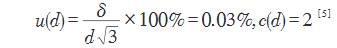 其次(ci),測量管(guan)徑引入(rù)的不确(que)定度。根(gen)據不同(tong)的測量(liang)範圍,其(qí)🤩最大允(yǔn)許誤差(chà)也有一(yī)定的差(chà)異,測量(liang)範圍在(zai)0~150的,其最(zuì)大允許(xǔ)誤🥵差主(zhǔ)要是±0.02,而(ér)測量範(fàn)圍在1500~2000,其(qí)最大的(de)允許誤(wù)差爲±0.14。實(shí)測的管(guan)徑大緻(zhi)爲81mm,-工作(zuò)人員根(gen)據矩形(xíng)分☎️布進(jìn)行考慮(lü),K=√3,因此,對(duì)⛹🏻♀️于測量(liang)管徑的(de)不确定(dìng)度的計(ji)算㊙️公式(shì)爲: