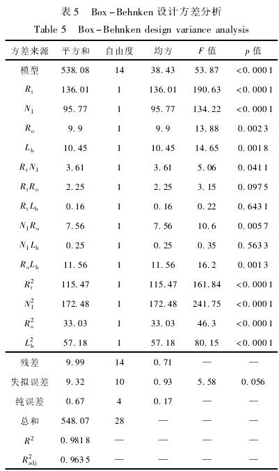 表(biao)5所示,p<0.0001<0.05,表(biao)明該模(mo)型是顯(xian)著的,具(ju)有統計(ji)學意義(yi)。由表5數(shu)據可得(de),自變量(liang)R、N、R。、Lh均顯著(zhe)(p<0.05),按照對(duì)響應值(zhí)的影響(xiǎng)程度排(pái)序爲葉(yè)輪頂端(duān)半徑R1>葉(ye)輪葉片(pian)數N1>葉輪(lun)輪毂長(zhang)度Lh>葉輪(lún)輪毂半(bàn)徑R。失拟(nǐ)項P=0.056>0.05,此值(zhi)不顯著(zhe),說明在(zài)試驗範(fan)圍内預(yù)測值和(he)實測值(zhi)的拟合(hé)度較高(gāo),能夠選(xuǎn)擇該回(huí)歸方程(chéng)對試驗(yan)結果進(jin)行相關(guan)分析,線(xiàn)性度誤(wu)差R的回(huí)歸方程(chéng)爲