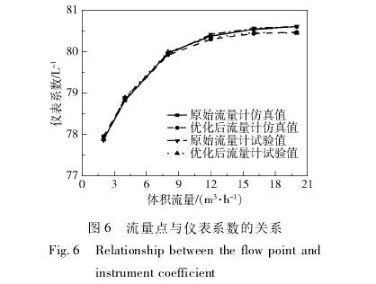 将(jiāng)原始流(liu)量計儀(yi)表系數(shù)與優化(huà)後的流(liú)量計儀(yi).表系數(shu)進行對(duì)比,結果(guǒ)如圖6所(suo)示。流量(liàng)計儀表(biǎo)系數CFD仿(páng)真值與(yǔ)試驗值(zhi)吻合,證(zhèng)明了CFD仿(pang)真的準(zhun)确性。對(dui)比原始(shi)渦輪流(liu)量計和(hé)優化後(hòu)渦輪流(liú)量計儀(yí)表系數(shu)試驗值(zhí)曲線得(dé)出,優化(hua)後的流(liu)量計在(zai)不同流(liu)量處的(de)儀表系(xì)數變化(huà)情況較(jiao)原來更(gèng)爲平穩(wen)。經計算(suan),儀表系(xi)數線性(xìng)度誤差(cha)由原來(lai)的1.71%下降(jiàng)到了1.59%,顯(xiǎn)著提高(gao)了渦輪(lún)流量計(ji)的測量(liang)精度。