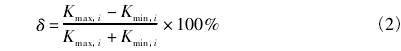 式中Kmin,i爲(wèi)流量計(jì)在5個流(liú)量點處(chù)得到的(de)儀表系(xi)數最大(dà)值;Kmin,i,爲流(liu)量計在(zai)5個流量(liàng)點處得(de)到的儀(yí)表系數(shù)最小值(zhi)。