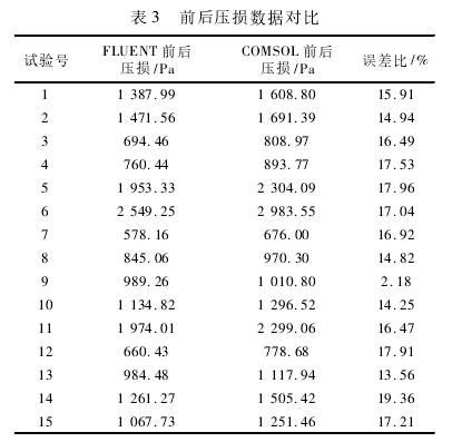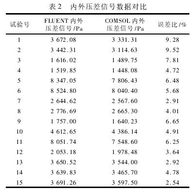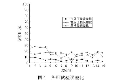 對于雙(shuang)向内外管(guan)壓差流量(liang)計而言,内(nei)外壓差信(xin)号大的條(tiáo)件下,壓損(sǔn)越小越好(hao),故選取内(nèi)外壓差信(xìn)号與壓損(sǔn)的差值,即(jí)壓損差,作(zuò)爲雙向内(nèi)外管壓差(chà)流量計的(de)評價指标(biao)。按照前文(wen)設置的結(jie)構參數建(jiàn)立15組三維(wéi)模型,分别(bié)利用FLUENT與COMSOL進(jin)行仿真,根(gēn)據仿真結(jié)果🔅,記錄内(nèi)外壓✍️差信(xin)号,将COMSOL和FLUENT仿(pang)真數據的(de)差的絕對(dui)值與FLUENT數據(ju)的比值定(dìng)義爲誤差(cha)比,内外壓(ya)差信号數(shu)據㊙️對比見(jiàn)表2,用同樣(yang)的方法記(ji)錄兩種軟(ruan)件仿真結(jié)果的前後(hou)壓損和壓(ya)損⭕差,并計(ji)算出誤差(chà)比,數據對(duì)比見表3、表(biao)4。繪🌈制的誤(wu)差比折線(xiàn)圖如圖4所(suǒ)示。