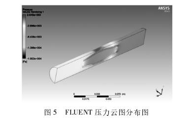 分别導出(chu)一組試驗(yàn)的仿真壓(ya)力雲圖進(jìn)行對比,如(rú)💋圖5、圖🌈6所示(shì)。由圖可知(zhī),壓力分布(bù)基本相同(tóng),COMSOL的壓力雲(yún)圖更加立(li)體直觀,視(shì)🐕覺效果比(bǐ)FLUENT更好。