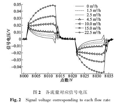 由于(yú)勵磁電(diàn)流沒有(you)達到穩(wěn)态,與之(zhī)對應的(de)信号電(diàn)壓也處(chu)🍓于㊙️非穩(wěn)态過程(chéng),主要包(bao)含流量(liàng)分量和(hé)微分幹(gan)擾兩部(bu)❗分,但是(shi),實際采(cǎi)集到的(de)傳感器(qi)信号引(yin)入了直(zhí)流偏置(zhì)和50Hz工頻(pin)幹擾,爲(wèi)此㊙️,對信(xin)号電壓(yā)進行梳(shu)狀帶通(tong)濾波處(chu)理以消(xiao)除直流(liu)偏置和(hé)工🈲頻幹(gàn)擾。各流(liú)量下信(xin)号電壓(yā)梳狀帶(dai)💘通濾波(bo)後的結(jie)果如圖(tu)3所🌈示,信(xìn)号電壓(ya)幅值由(yóu)低到高(gāo)對應的(de)流量依(yī)次爲0~22.5m3/h。其(qi)🈚中,圖2中(zhong)信号電(diàn)壓與圖(tú)1中前2個(ge)半周😍期(qi)的勵磁(ci)電流相(xiàng)對應,爲(wèi)正負兩(liang)個🍉半周(zhōu)期。可以(yi)看出,在(zai)非穩态(tai)上升過(guò)程中,信(xin)号電壓(ya)的幅值(zhi)與管道(dào)内流量(liang)大小仍(reng)是相關(guan)的。當流(liu)量爲零(líng)時,信号(hào)電壓主(zhu)要爲微(wei)分幹🤞擾(rǎo)。