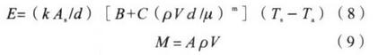 式中:k爲流(liú)體導熱系(xi)數;A,爲被加(jia)熱元件面(mian)積;B爲傳感(gǎn)器支撐件(jian)的自然對(duì)流、熱輻射(shè)和熱傳導(dao)總的熱傳(chuán)遞常數(相(xiàng)對于介質(zhì)的強制對(duì)流,傳感器(qì)的自然對(duì)流、熱輻射(she)和熱傳導(dǎo)影響極小(xiao));C爲.常數;d爲(wèi)傳感器直(zhi)徑;μ爲流體(tǐ)黏度;m爲系(xì)數(一般m≥0.3);T,爲(wei)元件表面(miàn)溫度;T爲介(jie)質溫度;A爲(wei)管道有效(xiao)截面積。