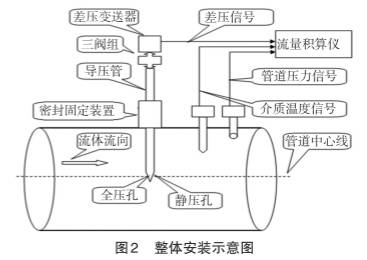 插人式(shi)流量計可(ke)以斷流安(ān)裝,也可通(tong)過帶壓開(kāi)孔工具在(zài)線安裝。安(an)裝時,隻需(xū)在管道上(shang)開一直徑(jìng)30mm的圓孔,在(zai)圓孔上方(fāng)焊接密封(fēng)固定裝置(zhì),把流量計(jì)插入即可(kě)。因支持在(zài)線插拔的(de)特性,避免(miǎn)停氣影響(xiǎng)生産,可在(zai)某些因生(shēng)産👌工藝要(yào)求✨而無法(fa)停氣的計(ji)量點進行(háng)安裝👨❤️👨。插入(rù)管道前,應(yīng)計算插人(ren)尺寸并檢(jiǎn)查取壓頭(tóu)全壓和靜(jing)壓孔方向(xiàng),保♻️證安裝(zhuang)後兩個取(qǔ)壓孔的端(duān)部位于管(guǎn)道中心⭐線(xiàn)上,即管道(dao)中心處,并(bing)且使全壓(yā)孔對正流(liu)體的來流(liú)方向、靜壓(yā)孔對正流(liú)體的去流(liu)方向,整體(tǐ)安裝🚩方法(fǎ)如圖2所示(shì)。