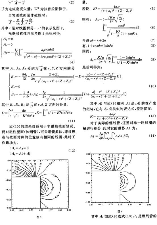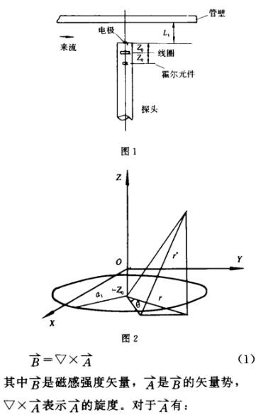 圖1中,插(chā)入式電磁流量計(jì)探頭的端部裝有(yǒu)一對電極💔,内‼️部🔴裝(zhuang)有一勵磁線圈,在(zài)它的周圍産生工(gōng)作磁場。爲研究磁(cí)場的詳🌈細分布狀(zhuang)況,先考慮單匝線(xiàn)圖。設其半徑爲α1,裝(zhuāng)在離端🌈部Z。處,流過(guò)的電流爲I,流體中(zhōng)的磁介質常數爲(wei)μ。采用矢量勢🏃🏻的表(biǎo)示法💰有: