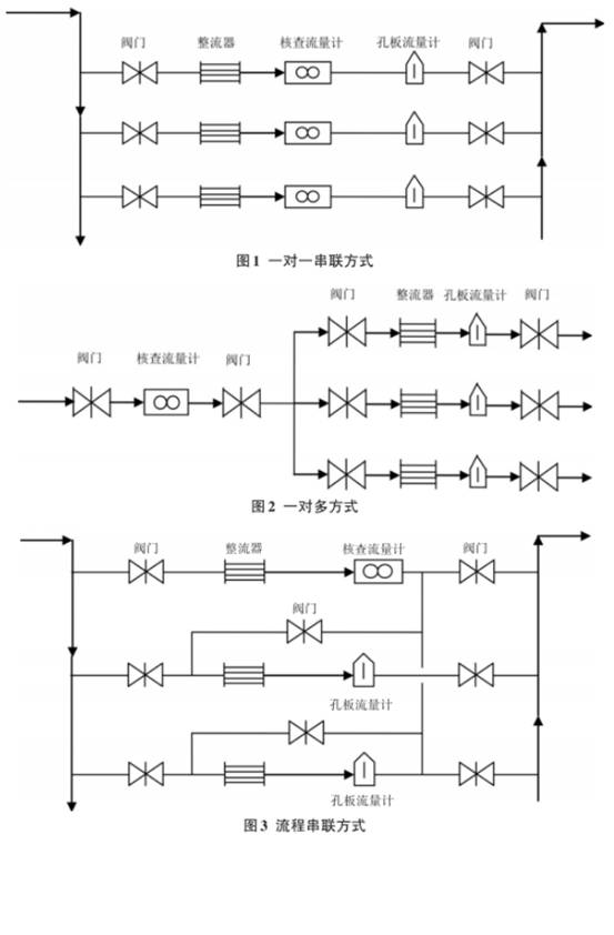 方(fang)式3:流程串(chuan)聯設置核(he)查流量計(ji),将-一台核(he)查流量計(jì)✔️與多台孔(kong)闆流量計(jì)并聯安裝(zhuāng),流程串聯(lian),利用流程(cheng)切換,對不(bu)同🙇🏻孔闆流(liu)量計分别(bié)進行流量(liang)核查,如圖(tu)3所示♉。這種(zhǒng)方式屬于(yu)暫時性核(he)查方式,目(mu)的與方😘式(shì)2相同,但因(yin)場地限❓制(zhì)等問題,是(shi)可選取的(de)另一種方(fang)式。