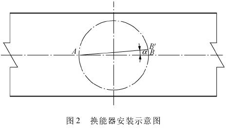 換能(néng)器安裝位(wei)置的正确(que)與否直接(jiē)關系到測(cè)量結果,難(nán)㊙️點有兩個(ge):一是兩個(gè)換能器之(zhi)間的連線(xiàn)應與管道(dao)🆚中心軸線(xiàn)平行;二是(shì)确定平均(jun)管徑位置(zhi)。如圖2所示(shi),管♋道口徑(jìng)🈚爲DN1800.以2聲程(cheng)V法測量爲(wei)例。AB爲超聲(sheng)流量計給(gěi)出的兩個(ge)換能器之(zhi)間的🍓安裝(zhuang)距離(1325mm)。在實(shi)際安裝過(guo)程中,如果(guǒ)沒有其它(tā)的輔助手(shou)段,難以做(zuò)到AB連線與(yǔ)管道中心(xin)軸線平行(hang)。假若偏離(lí)角α爲1°,右側(cè)換能器的(de)偏離距離(lí)近似等于(yú)弧長B′B,B′B=11.5mm。若管(guan)道口徑爲(wèi)DN2000,以表1中🎯最(zui)長換能器(qi)安裝⛱️間距(ju)計算,AB=2984mm,則B′B=26mm,對(duì)測量結果(guo)将帶來不(bu)可忽略的(de)影響。