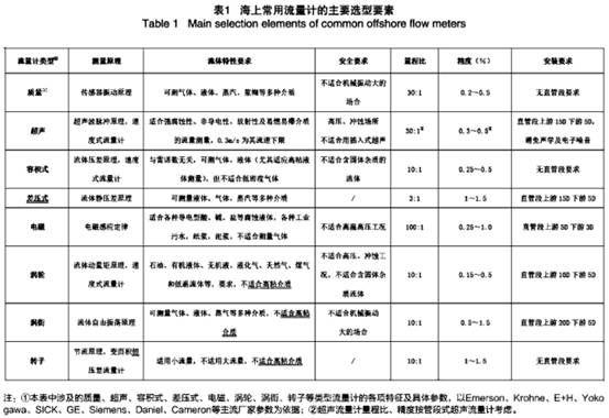 以表(biao)1列舉的海上平(ping)台常用的流量(liang)計爲基礎,針對(dui)上述工藝流程(cheng)參數開展流量(liang)計選型具體工(gong)作。