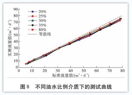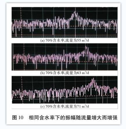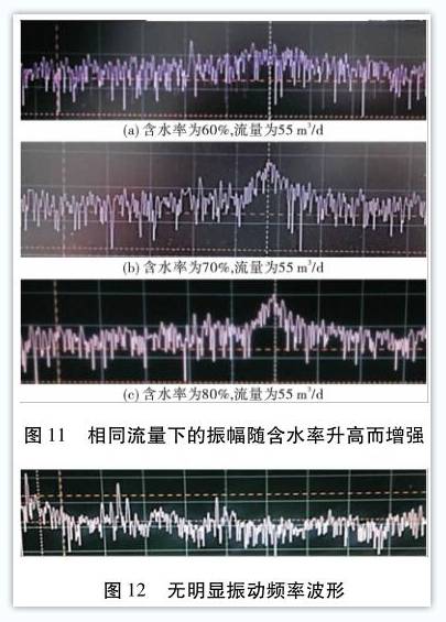5.2油(yóu)水兩相介(jie)質測試 對(duì)标定好的(de)井下渦街(jiē)流量計進(jìn)行充分混(hùn)合的油水(shui)兩相介質(zhì)測試,主要(yao)測試井下(xià)渦街流量(liàng)計在不同(tong)含🎯水率介(jie)質以及🏃不(bú)同流量下(xia)的測量精(jīng)度,不同含(hán)水率🔴介質(zhì)中的流量(liàng)測量結果(guǒ)如圖8所示(shi)。可以看出(chu),在兩相介(jie)質中,渦街(jie)流量計⚽的(de)測量流量(liàng)值始終低(dī)于參考流(liu)量計流量(liàng)值🤟,這是由(you)于2種介質(zhì)混合後,整(zheng)體粘度變(bian)大,流體流(liu)态發生🌍改(gai)變,因此斯(sī)特勞哈♈爾(ěr)數發生一(yi)定程度變(bian)化。 爲進一(yi)步分析含(han)水率對測(cè)量誤差的(de)影響,圖9給(gei)出☀️了不同(tóng)含水率時(shi),渦街流量(liang)計在5~80m3/d測量(liàng)範圍内的(de)平均相對(duì)誤差。可✏️以(yǐ)看出,當含(han)水率低于(yú)40%時,渦街流(liú)量計的測(cè)量非常大(dà)相對誤差(cha)爲4.8%,主要原(yuan)因在于含(han)水率較低(di)時,充分混(hùn)合的油水(shuǐ)兩⛹🏻♀️相介質(zhì)形成了油(you)包🙇🏻水的乳(rǔ)狀液,兩相(xiang)斯特勞哈(hā)爾數呈現(xian)❌非線性變(biàn)化🛀,從而帶(dài)來測量誤(wu)差;當含水(shuǐ)率高于40%時(shi),渦街流量(liàng)計🆚的測量(liang)逐漸趨于(yú)⛷️穩定,相對(dui)誤差小于(yú)2.5%,這一現象(xiàng)是🈲由♈于随(sui)着含水率(lǜ)提㊙️升,轉變(bian)爲水包油(you)乳狀液,水(shui)相☁️中的油(yóu)泡較小且(qie)分布均勻(yun),介質流态(tai)變好,測量(liang)精度也得(de)到改善。 在(zài)井下渦街(jie)流量計試(shi)驗過程中(zhong),由于機械(xiè)振動以及(jí)外🛀部環境(jing)會對壓電(diàn)傳感器産(chǎn)生幹擾,因(yin)此在沒有(you)流量通過(guò)時🔞依然會(huì)産生一定(dìng)的振動,通(tong)過傅裏葉(yè)變換後表(biao)現爲均布(bù)‼️在整個👌頻(pín)域的白噪(zào)聲。将各測(cè)試條件下(xia)的示波🐆器(qì)波形進行(háng)整合,通過(guò)對比發現(xian):當油水比(bi)例固定時(shí),在🌍頻域分(fèn)析中🛀🏻,旋渦(wo)脫落所對(dui)應的頻率(lü)峰值随流(liú)量增大而(er)增大,如圖(tu)10所示;當流(liú)量一定時(shi),在頻域分(fen)析中,旋渦(wo)脫落所對(dui)應的頻率(lǜ)峰值随含(han)水率升🔞高(gāo)而升高,如(rú)圖11所🌈示。上(shang)述現象說(shuo)明,該渦街(jiē)流量計應(ying)用于高含(han)水、大流量(liàng)的工作環(huán)境中具有(you)較強的抗(kang)幹擾性。反(fan)之,當流👉量(liàng)較小或含(han)水率較低(dī)的情況下(xia),探頭檢測(ce)到的被測(ce)介質經旋(xuan)渦發生體(tǐ)分離後産(chan)生的振動(dong)所對應的(de)頻率值與(yu)系統噪聲(sheng)産生振動(dòng)的頻率值(zhí)較爲接近(jin),如圖12所示(shì),無法明顯(xian)區分,可能(neng)會導緻單(dān)片機所采(cai)集到的有(yǒu)效流量值(zhí)對應頻率(lǜ)不準确,從(cong)而産生了(le)在小流📧量(liàng)或低含水(shuǐ)率情況下(xia),測💁試精度(du)下降的現(xian)象,因此需(xū)要對非常(cháng)小流量進(jin)行限制。