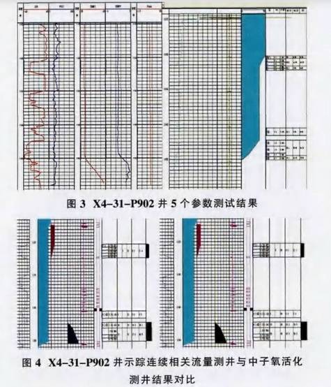 圖3是X4--31-P902井的5個(ge)參數測試結(jié)果,該井注人(ren)壓力9.2MPa,實測1110m的(de)💯壓力爲20.3MPa,符合(hé)💯注入壓力。實(shí)測伽馬曲線(xian)特征峰值明(míng)顯,與🏒電測曲(qǔ)線重複較好(hao)。井溫曲線在(zai)吸水量較大(dà)的層位PI33、PI1以及(ji)吸水底界處(chu)均有明顯變(bian)化。磁定位曲(qǔ)🌏線無幹擾,工(gōng)具、接箍🔞清晰(xī)。流量😄連續曲(qu)線波動小,在(zai)吸水層段顯(xiǎn)示出流量變(biàn)⁉️化的趨勢。流(liú)量連續曲線(xiàn)形态與點測(ce)結果相吻合(hé),圖4是X4--31-P902井示蹤(zong)連續相關流(liú)量與中子氧(yǎng)活化測井結(jie)果對比,測試(shì)結果與5個參(cān)數曲線--緻均(jun1)顯示PI33位主要(yao)吸水層,PI1爲次(cì)要吸水層,PI2'不(bú)吸水,與井溫(wen)曲線的定性(xing)分析相對應(ying),與電磁流量(liàng)測試結果基(ji)本相同。這些(xiē)結果表明,該(gai)儀器性能穩(wen)定、可靠,各參(can)數的測試結(jié)果正确合理(li)。