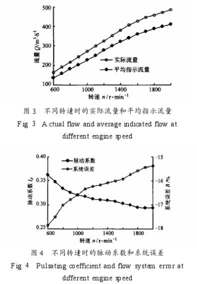 圖(tú)3示出了(le)發動機(jī)各轉速(su)時的實(shi)際流量(liàng)和平均(jun)指示流(liu)量,圖4示(shi)出了發(fa)動機各(gè)轉速時(shí)的流量(liàng)脈動1系(xì)數和系(xi)統誤差(chà)。