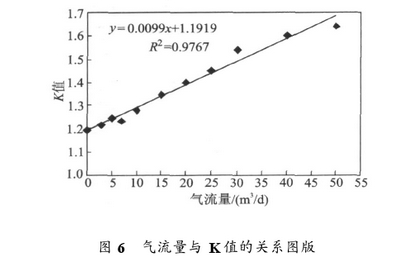 保(bao)持氣量不(bú)變,取水相(xiàng)流量10m³/d及以(yi)上時的數(shù)據,計算渦(wō)🈲輪響應與(yu)水流量關(guan)系直線的(de)斜率(即K值(zhí)),然後做出(chu)氣流量與(yǔ)K值的關系(xi)圖版如圖(tu)6所示5随着(zhe)氣相流量(liàng)的增加,K值(zhí)近似呈線(xiàn)性增加。
