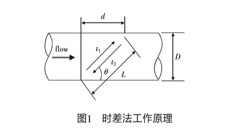 時差法超(chao)聲波流量(liàng)計是以超(chao)聲波在流(liu)體内順逆(nì)兩個傳播(bō)方向,利用(yòng)傳播時間(jian)差與流體(ti)流速之間(jian)❄️的關系求(qiu)得流體流(liu)🚶量的🔴,工作(zuò)原理如圖(tu)1所示。