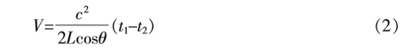 式中::C一聲(shēng)速;L一聲波(bo)傳播距離(lí);0一聲道夾(jia)角;t1、t2--聲波順(shun)逆向傳🐕播(bo)時間。