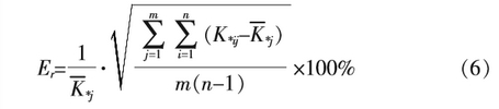 式中:m一(yi)測量組數(shu);n一每組包(bao)含的測量(liang)次數;K*ij一第(di)j組中第k次(cì)測量結果(guǒ);`K*j一第j組測(ce)量結果的(de)平均值。
