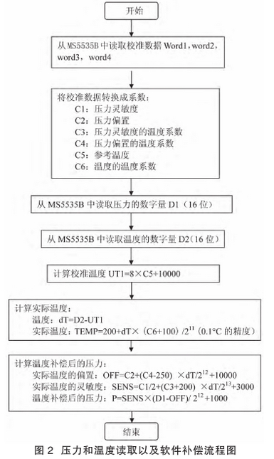 摘要:介紹了(le)一種渦輪式氣體(tǐ)流量計 的溫度.壓(yā)力補償方法,該方(fāng)法采用MS5535B傳感器測(ce)量被測氣體的溫(wēn)度和壓力,采用軟(ruan)件方法進行補償(cháng)。 0引言. 氣體的流量(liang)通常用體積流量(liàng)來表示,體積流量(liang)是🌈指🧑🏾🤝🧑🏼單位時間内(nei)通過管路任一截(jie)面的氣體體積。但(dàn)是由于氣體分💃🏻子(zi)排列松散,随着溫(wēn)度或壓力的變化(huà),分子間距會🌈發生(sheng)變化,體積也會發(fā)生相應的變化。體(ti)積與壓力成反🙇♀️比(bǐ),與溫度成正比,在(zài)🙇♀️溫度和壓😄力變化(huà)的情況下,無法計(ji)量和比較氣體的(de)體積流🙇🏻量,需要将(jiāng)其統--轉換爲标準(zhǔn)狀态下的體積流(liú)量。工程上氣體流(liu)量--般都以标準狀(zhuang)态下的體積流量(liàng)來表示。因此,需要(yào)對工作狀态下測(cè)得的💚氣體流量進(jin)行溫度、壓🏃🏻力補償(cháng)。 1渦輪式氣體流量(liàng)計的溫度、壓力補(bu)償方法 渦輪式氣(qì)體流量計直接測(ce)量的是工作狀态(tai)下氣體的㊙️體積流(liú)量,标準狀态下氣(qì)體的體積流量爲(wei): 式中qvn、qv-分别爲标準(zhǔn)狀态和工作狀态(tài)下的體積流量,m³/h;p、T、Z-分(fen)别爲工.作狀态下(xia)絕對壓力(Pa),熱力學(xué)溫度(K)和氣體壓縮(suō)系數;pn、Tn、Zn一分别爲标(biao)準狀态下絕對壓(ya)力(Pa),熱力學溫度(K)和(hé)氣體壓縮系數🥵。 由(yóu)于被測氣體所處(chù)狀态壓力較低,且(qiě)溫度大大高于臨(lín)界溫度,因此可以(yi)按理想氣體計,這(zhè)時氣體壓縮系數(shù)取爲1甲。将測量得(dé)到的工作狀态下(xià)的溫度和壓力數(shu)值帶入(1)式,即可得(de)到🔞補償後🐇的氣體(ti)流量數值。 2溫度、壓(ya)力測量用傳感器(qì) 工作狀态下的溫(wen)度、壓力數值可采(cai)用型号爲MS5535B的集成(chéng)壓力傳感器來進(jin)行測量。MS5535B的主要功(gong)能是将從壓☔阻式(shi)壓力傳感器輸出(chu)的未經補償模拟(ni)電壓值轉換爲16位(wèi)的數字量,同時提(tí)供-一個傳感器溫(wen)度的16位數字量。該(gai)芯片具有如下特(te)點: 1)0一14bar的絕對壓力(lì)範圍 2)芯片中存有(you)用于軟件補償的(de)6個系數 3)15位的ADC 4)3線串(chuàn)行接口 5)1個系統時(shí)鍾(32.768kHz) 6)低電壓低能量(liàng)消耗 7)供電電壓在(zai)2.2V~3.6V 8)低電壓電流 9)-40~+125℃工作(zuo)溫度 MS5535B有8個引腳,引(yǐn)腳定義和功能如(ru)表1所示。 3溫度、壓力(li)測量傳感器與單(dān)片機的接口電路(lù)設計 MS5535B與單片機MSP430F147的(de)通信是通過3線同(tóng)步的串行接口實(shi)現的。圖1爲壓力🈲傳(chuán)感器MS5535B和單片機MSP4320F147的(de)硬件連接圖。單片(pian)✨機MSP430F147的P2.1引腳輸出同(tóng)步串行時鍾信号(hao),P2.4引腳采樣由MS5535B輸出(chū)的數據,P2.2引腳輸出(chu)數✌️據給MS5535B,P2.0引腳向MS5535B輸(shū)出32.768kHZ的主時鍾信号(hao)。 4軟件設計 MS5535B輸出的(de)電壓與溫度和測(cè)量過程的誤差有(yǒu)很大關系,所以需(xū)要補償這些影響(xiǎng)。補償是通過單片(piàn)機MSP430F147軟件補償來實(shi)現🐕的。補償用的校(xiào)準數據Wordl到Word4存儲在(zài)MS5535B的64位PROM中,可通過單(dān)片機MSP430F147的軟件讀出(chu)用于對16位的壓力(lì)值(D1)和16位溫♌度值(D2)進(jin)行補償,得到用于(yú)渦輪式氣體流量(liang)計溫度、壓㊙️力補償(chang)的壓力值和溫度(du)值。圖2描述了讀取(qu)壓力值、溫度值和(hé)軟件補🐅償執行的(de)過程。首先,通過串(chuan)行接口讀出wordl到word4。下(xià)🔅一一步,用🤟位方式(shì)邏輯和移位操作(zuo)取出補償🈲系數Cl到(dao)C6(wordl到word4的位模式參考(kǎo)表2)。然後單片機📞MSP430F147通(tōng)過串行接口讀取(qu)16位的壓力值(D1)和16位(wei)溫度值(D2)。最後,通過(guò)D1、D2和C1到C6運用圖2所示(shi)的運算法則計算(suan)出補償後的🧑🏾🤝🧑🏼壓力(li)值。 Wordl到Word4、D1和D2是通過3線(xiàn)同步串.行通信讀(dú)取的。MS5535B在SCLK的上升沿(yán)采樣♍一⭕位,并☀️且在(zài)上升沿發送一-位(wèi),以此來實現信号(hao)轉換的同步。單片(pian)機MSP430F147在SCLK的下降沿采(cǎi)樣從MS5535B的DOUT引腳🔱輸出(chū)的數據,并且在SCLK的(de)👄下降沿将數據發(fa)送到MS5535B的DIN引腳,SCLK信号(hào)是由單片機MSP430F147産生(shēng)的。輸❓出數據的⭐選(xuǎn)擇通過向MS5535B的DIN(數據(ju)輸入)腳輸入相應(yīng)的指令來🆚實現。 如(rú)圖3所示,MS5535B和單片機(ji)MSP430F147的每--次通訊都是(shì)以單片機MSP430F147向MS5535B芯片(piàn)的♉DIN腳發送一-個指(zhi)令序列開始的。在(zài)每一-個指令序🏃🏻♂️列(lie)之前都有一一個(gè)開始序列(3個高電(diàn)平1),每一個指令👄序(xu)列之後都有一-個(ge)停止序列(3位低電(diàn)平0)。每一.條指令有(yǒu)四位組成,用于選(xuǎn)♉擇由M55535B的DOUT腳輸出的(de)是🤟壓力、溫度或👨❤️👨是(shi)校準數據。在輸出(chu)壓力和溫度時,在(zai)停止序列的最後(hou)--位時,MS5535B的DOUT腳會輸出(chu)-一個應答信号一(yī)低電平到高電平(píng)的轉🚩換,表示了☁️--次(cì)轉換的開始。應㊙️答(da)信号之後,單片👌機(jī)MSP430F147向MS5535B的SCLK腳輸人2個脈(mò)沖,然後再輸出低(di)電❤️平,保持MS5535B的SCLK腳爲(wèi)低,直到在MS5535B的DOUT腳出(chū)現由高到低的信(xin)号,表示轉換結束(shù)。單片機MSP430F147通過向MS5535B的(de)SCLK腳輸入另外的