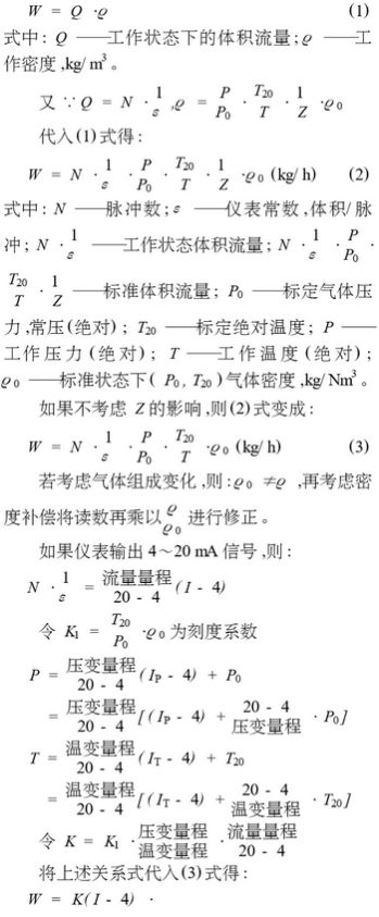 3漩渦流量計(ji)測量介質爲氣體(ti)時,溫度、壓力補償(cháng)公式