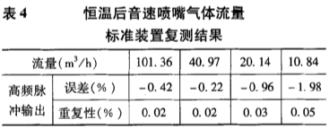通過(guo)表2可以發現(xian)在恒溫後的(de)檢測結果誤(wu)差發生了較(jiao)大的變🧡化,重(zhong)複性也較好(hǎo),考慮到兩套(tao)裝置的系統(tong)誤差不超🚩過(guo)0.3%,但實際檢測(cè)結果最大誤(wu)差偏移達到(dao)了2.30%,如此之大(da)的偏移量并(bìng)不是标準裝(zhuang)置所引起的(de)。将該台氣體(ti)渦輪流量計(jì)馬上拿到音(yin)速噴嘴氣體(tǐ)流量标準裝(zhuāng)置上進行複(fú)測,所用噴嘴(zui)未改變,檢測(cè)結果見表3。