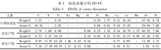 将渦街流(liu)量計的不鏽鋼基(ji)底和圖1中的腐蝕(shi)産物進行EDAX分析,其(qi)測試結果如圖2和(he)表1所示。可以看出(chū),不鏽鋼基底⚽含有(yǒu)C、O、Si、Mo、Ca、Cr、Fe、Ni元素;黑色腐蝕産(chǎn)物含有C、NO、Al、Si、Mo、Ca、Cr、Mn、Fe、Ni元素;黃色(sè)🙇🏻腐蝕産物含有✊C、N、0、Na、Mg、Al、Ca、Cr、Fe、Ni元(yuan)素。與不鏽鋼基底(di)相💃🏻比.黑色腐蝕産(chan)物主要增加了N、Al.Mn元(yuán)素;黃色腐蝕産物(wù)主要增加了N、Na、Mg、Al元素(sù).兩者腐蝕産物共(gòng)網♍增加了N和A1元🏃🏻♂️素(su)。其中.N元素直接來(lái)源于四氧化二氮(dan)參與反應形成的(de)含N産物,而A1元素很(hěn)可能來自周圍環(huan)境。比如💁水中的雜(za)質代入等。黃色腐(fu)蝕産物中的Na和Mg的(de)存在可🤞以作爲佐(zuo)證㊙️。另外.不鏽🔴鋼基(ji)底N含量、0含量、Cr含量(liang)、Fe含量、Ni含量的原子(zǐ)百分比爲0%、2.82%、17.45%、59.94%.7.40%.黑色腐(fu)蝕産物和黃色腐(fǔ)蝕産物的N含量、0含(han)量、Cr含量、Fe含量.Ni含量(liang)的原子百分比分(fen)别爲3.37%、16.23%、15.57%.47.24%、5.65%和17.38%.68.93%、0.33%、3.83%.0.51%。由此得出(chu).與不含N元素的不(bu)鏽⛱️鋼基底相比。黑(hei)色腐蝕産物和黃(huáng)色腐蝕産物的N含(hán)量和0含量更高.而(ér)Cr含量、Fe含量和Ni含量(liàng)相對🌂更低.同時黃(huang)色腐蝕産物的N含(han)量和🐆0含量比黑色(se)腐蝕産物的N含量(liàng)和O含量🌐要高很多(duo)。而Cr含量、Fe含量和Ni含(hán)量相對要❗少很多(duo)。能譜結果表明.N元(yuán)素的參與導緻不(bú)鏽鋼基底表面的(de)腐蝕.而N元素的直(zhi)接來源是四氧化(hua)二氮.其與不鏽鋼(gang)基底表面在環境(jing)因素作用下發生(sheng)複雜的化學或電(diàn)化學反應導緻N元(yuan)素進入腐蝕産物(wù)中。黃色腐蝕産物(wu)比☁️黑色🚶腐蝕産物(wu)的腐蝕程度更重(zhòng).這也表明不鏽💃鋼(gang)基底👉表☔面的腐蝕(shí)程度與進入腐蝕(shi)産物中的N含量有(you)關。由于四氧化二(èr)氮本身不與幹燥(zào)的不鏽鋼反應,故(gù)存在某種中間反(fǎn)應物質.該物質含(hán)量越高.不鏽鋼基(ji)底表面腐蝕👄越嚴(yán)重。