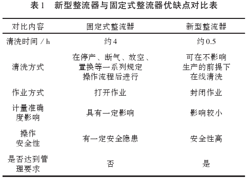 摘要:整(zheng)流器作爲氣(qì)體平整裝置(zhì),其作用是将(jiāng)天然氣的流(liú)态從🎯紊流變(bian)爲平流,從而(er)使後端标準(zhun)孔闆流量計(jì) 的計量更加(jia)正确。爲了有(yǒu)效提高整流(liú)器在天然氣(qi)🈲生産中的使(shi)🛀用效果、延長(zhǎng)其使用壽命(mìng)、解決整流器(qì)在天然氣生(sheng)産與計⁉️量過(guò)程中所面臨(lín)的清洗困難(nan)、維護不便等(děng)問⁉️題,以天然(rán)氣計量中具(ju)有代表性的(de)管式整流器(qi)爲研究對象(xiàng),分析🐕了現用(yong)管式整流器(qì)在生産過程(cheng)中的弊端與(yu)不足,針對性(xing)地提出了解(jie)決方法。研究(jiu)結果表明:經(jing)過對現有管(guǎn)式整流器的(de)優化,克服📧了(le)傳統整流器(qì)拆裝工藝繁(fán)瑣、作業風險(xiǎn)高等不足,提(tí)高了現場作(zuò)業的安全性(xìng),原創性地研(yan)🐅制了一種可(ke)在線維護的(de)體積流量計(jì)整流器🌂。結論(lùn)認爲,所設計(ji)的新型整流(liú)器克服了現(xiàn)有技術的不(bú)♌足,解決了整(zheng)流器使用過(guo)程😄中拆裝工(gōng)藝繁瑣、作業(yè)風險高等問(wen)題,符合國家(jia)規定的使用(yong)标準,有效提(ti)高了整流器(qi)清洗與維護(hu)的效率。 0引言(yán) 天然氣作爲(wèi)清潔能源,其(qí)需求量随着(zhe)社會的發展(zhǎn)逐年增大🚩,與(yu)之相應的是(shì)對天然氣計(ji)量的精度要(yào)😄求高。目前,天(tiān)然氣計量廣(guǎng)泛使用标準(zhǔn)孔闆流量計(jì)。其原理是以(yi)流體進入孔(kǒng)闆前⁉️、後所形(xing)♊成的壓差爲(wei)基礎,通過理(li)想流态下的(de)經驗公式結(jié)合數學模型(xíng)進行計算,得(de)出具體數值(zhí)。實際使用過(guò)程中管内流(liu)态是否能滿(mǎn)足相應要求(qiú)是計量精度(du)的關鍵㊙️。通過(guò)🛀前人研究表(biǎo)明,影響流量(liàng)計精度的因(yin)素較多,特别(bié)是氣體流态(tài)對計量精度(dù)的影響。現階(jie)⚽段我國所使(shi)用的整流器(qi)爲固定式結(jié)構,但其存在(zài)較多缺陷,因(yīn)此提出一種(zhǒng)可在🧡線維護(hù)的體積流量(liàng)計🛀整流器的(de)♈設計思路,其(qi)使用、維護方(fang)便,無需繁瑣(suǒ)的工藝流程(chéng),使操作人員(yuán)的勞動強度(du)及作業風險(xian)得以降低,工(gōng)作效率提高(gao)的同時還可(ke)節約生産成(cheng)本。 1固定式整(zheng)流器缺陷分(fen)析 整流器爲(wei)氣體平整裝(zhuang)置,安裝于标(biāo)準孔闆流量(liang)計的前端,其(qí)作用是将天(tian)然氣的流态(tài)從紊流變爲(wei)平流,從而使(shǐ)後端标準🙇🏻孔(kong)闆流量計的(de)計量更加正(zheng)确。目前所使(shi)用的整流器(qi)均爲固定式(shi)結💛構(圖1)。 整流(liú)器在工作過(guò)程中,由于氣(qi)流所攜帶的(de)雜質會使管(guǎn)内堆積污垢(gou),引起管束内(nèi)部堵塞或半(ban)堵塞,易形成(chéng)紊流,使整❗流(liú)效果變差。通(tong)過對現有固(gù)定式整流器(qì)結構及使🎯用(yong)效果分析,主(zhu)要存在🎯以下(xià)不足:①維護、清(qing)洗時必須要(yao)實施關井、放(fàng)空、置換等一(yi)系列流程倒(dǎo)換及停産斷(duàn)氣等操作,工(gong)作程序㊙️繁瑣(suǒ),不但影🔴響氣(qì)井的正常生(sheng)産,還影響對(dui)下遊天然氣(qì)用戶的正常(chang)供氣;②整流器(qì)作爲計量裝(zhuāng)置的一部分(fèn),與計量精度(dù)密切相關,若(ruo)長時間不清(qing)洗,會降💛低✉️整(zhěng)流效果🛀,使紊(wen)流加重,影響(xiang)計量的正确(què)率,對企業經(jing)濟效益🔴造成(cheng)直接影響;③若(ruò)☔在拆卸🈚、更換(huàn)的過程中遇(yù)到有毒💯或高(gāo)壓氣流,可能(neng)會對操作🌈人(rén)員的人身安(ān)全造成🏃威脅(xie)。 2新型整流器(qi)設計思路與(yǔ)特點 2.1工作原(yuán)理 設計改進(jin)以分體式閥(fa)腔爲基礎,通(tōng)過滑闆閥的(de)阻隔💯将其分(fen)爲上、下兩個(gè)閥腔,并在工(gōng)作中利用齒(chǐ)輪軸逐層傳(chuan)遞的方式将(jiāng)整流管(闆)從(cóng)下閥腔移至(zhì)上閥腔。通過(guo)放空閥平衡(héng)上閥腔與外(wài)界💋壓力,安全(quán)取出整流管(guǎn)⭐(闆)。在對其✍️清(qing)洗、維護後用(yòng)相同方式将(jiang)其安裝歸位(wèi)。 2.2結構設計 根(gēn)據國家标準(zhun)(GB/T21446-2008)規定,标準孔(kong)闆流量計整(zheng)流器分爲㊙️兩(liang)種✊:一種爲🚶♀️管(guan)束式,即整流(liú)管;另一種爲(wèi)孔闆式,即整(zhěng)流闆。兩者均(jun1)🐉爲固定式安(ān)裝模式。新型(xíng)整流器在固(gu)定式整流器(qi)結構的基礎(chu)上,以國家标(biao)準爲依據💋,利(li)用閥腔阻隔(gé)結構,結合齒(chǐ)輪🈲傳動原理(lǐ)進行設計,使(shǐ)其滿足對管(guan)束式及孔💞闆(pan)式的使用需(xū)求(圖2)。 裝置整(zhěng)體爲上、下雙(shuāng)閥腔式,外部(bu)通過閥體固(gu)定螺絲使其(qi)相連🚩,閥腔内(nèi)部通過滑閥(fa)的移動上、下(xià)阻隔。整流管(guǎn)(闆)安放于下(xia)閥腔下部,兩(liang)端與輸氣管(guǎn)道相接,内部(bu)可使氣🆚流平(ping)穩流通。整👌流(liu)管(闆)兩端外(wai)側設✏️有齒輪(lun)槽,下閥腔底(dǐ)💔部爲排污槽(cao),排污槽順氣(qi)流方🤞向的一(yi)側安裝有排(pái)污閥🚩。下閥腔(qiāng)上部兩端安(an)裝有🚶齒輪軸(zhou),其轉動時可(kě)帶動整流管(guan)(闆)上下移動(dòng)。上閥腔底部(bu)爲滑閥,中部(bu)兩端🥰設計有(yǒu)與下閥腔相(xiang)同的齒輪軸(zhóu),